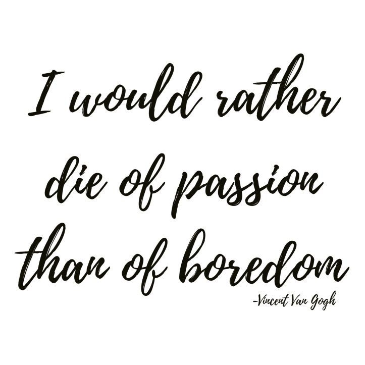 A phrase you’ll never hear me say is, “I’m bored.” Just like Van Gogh, I’d rather die of passion than of boredom.