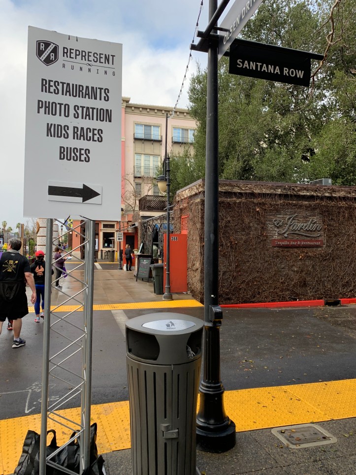 As for the course, I enjoyed that it was a point to point course versus a looped course. For the course, its website states, “Start at SAP Center in Downtown San Jose. Head West on Santa Clara – Continue on The Alameda – Left on Randol – Right on Morse – Left on Naglee – Left on Park – Right on Hester- Right on Dana – Left on Naglee – Right on Garden – Left on Emory – Continue on Laurelei – Left onto Hedding – Left on Monroe – Right on Stevens Creek. Left on Santana Row – 8K = 4.97 miles.”