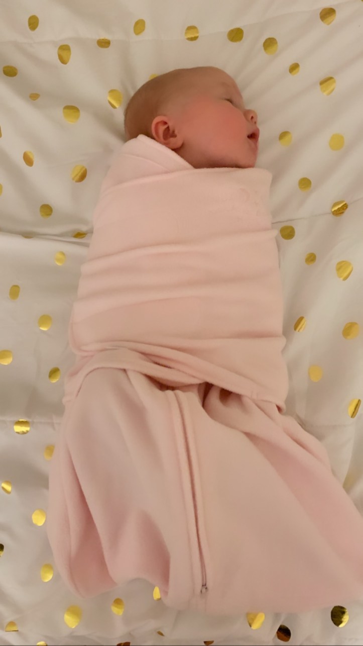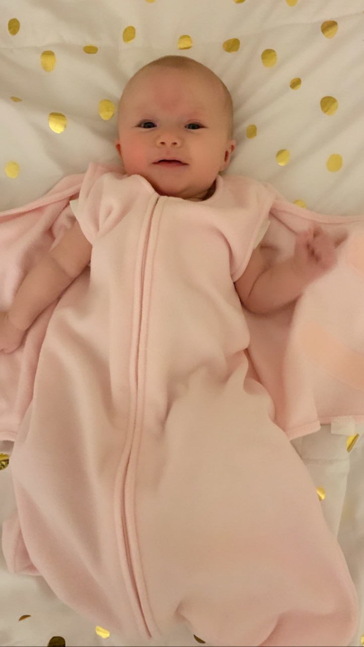 Our bed time routine consists of bath time, book, nurse, burp, and swaddle. When Seraphina was a newborn, we used the SwaddleMe swaddles. Now, however, we use the Halo Sleep Sack Swaddle.