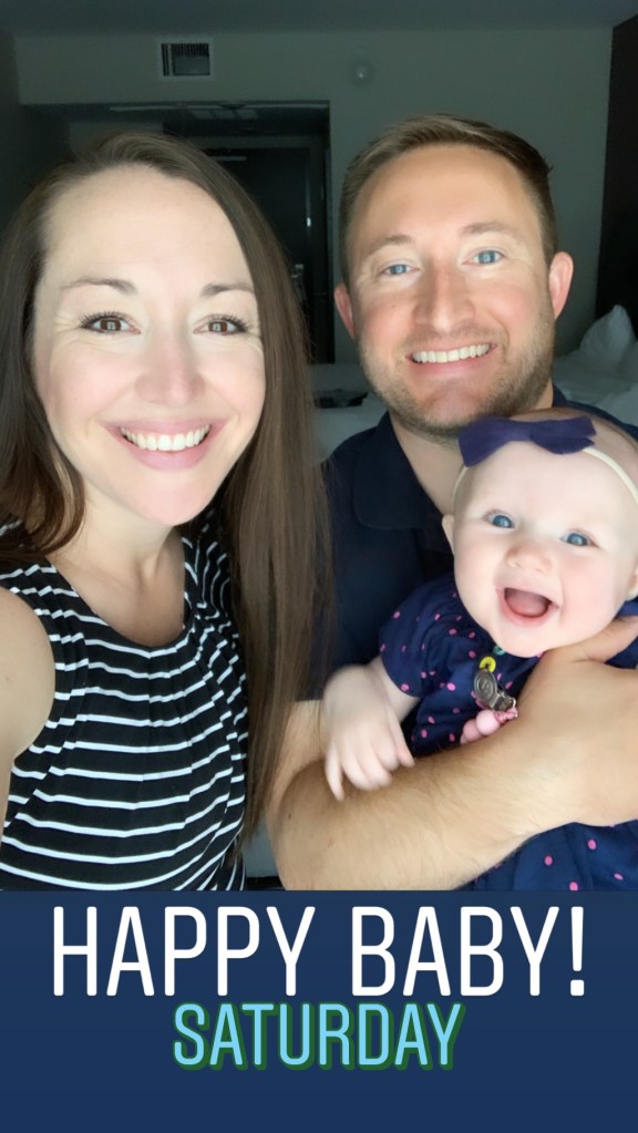 Since my alarm goes off at 5am Monday through Friday, baby is use to waking up at 5am. Sadly, this means she wakes up at 5am on the weekend as well. I therefore, woke up at 5am on Saturday, got ready for the day with baby, and then headed downstairs to breakfast in our hotel first with my mom and then again with my hubby (he was able to sleep in a little bit).