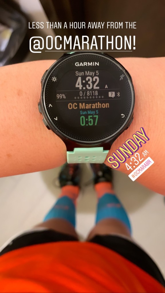Note: I don’t have a race recap video for the OC Marathon because I thought my GoPro was charging overnight, but apparently it wasn’t because it died after I shot my first video during the race. 😦