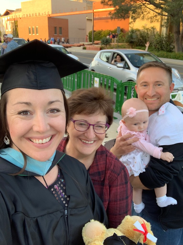 I waved up to my mom, husband, and baby as I made my way over to accept my Master’s degree. Before walking across the stage, I realized that it had been 17 years since earning my high school diploma and 11 years since earning my Bachelor’s degree (I never attended the graduation ceremony for my bachelor’s degree). After I saw the few doctoral students walk the stage prior to all of the Master’s students walk the stage, I am now more motivated than ever to earn my Doctorate in Education!
