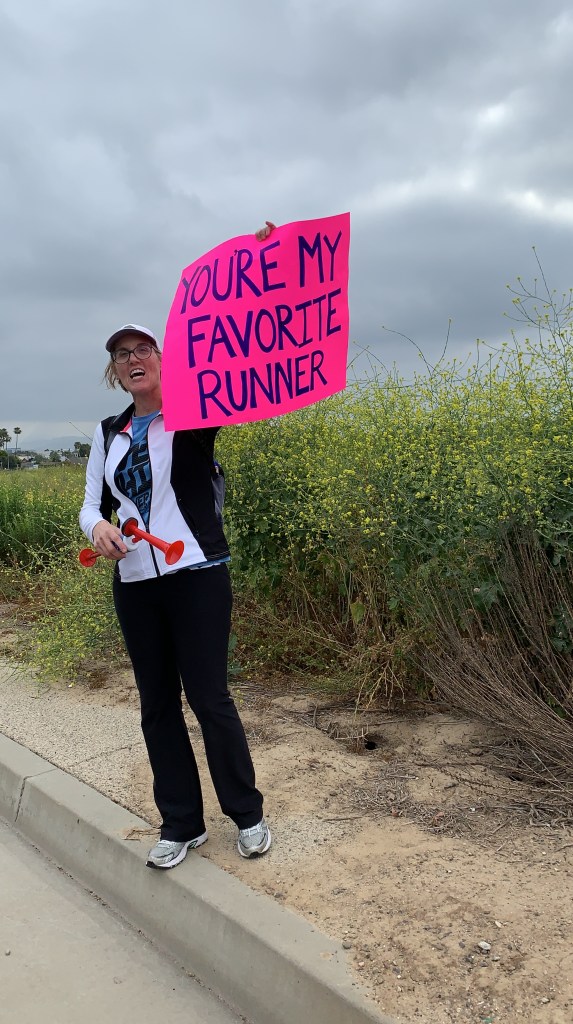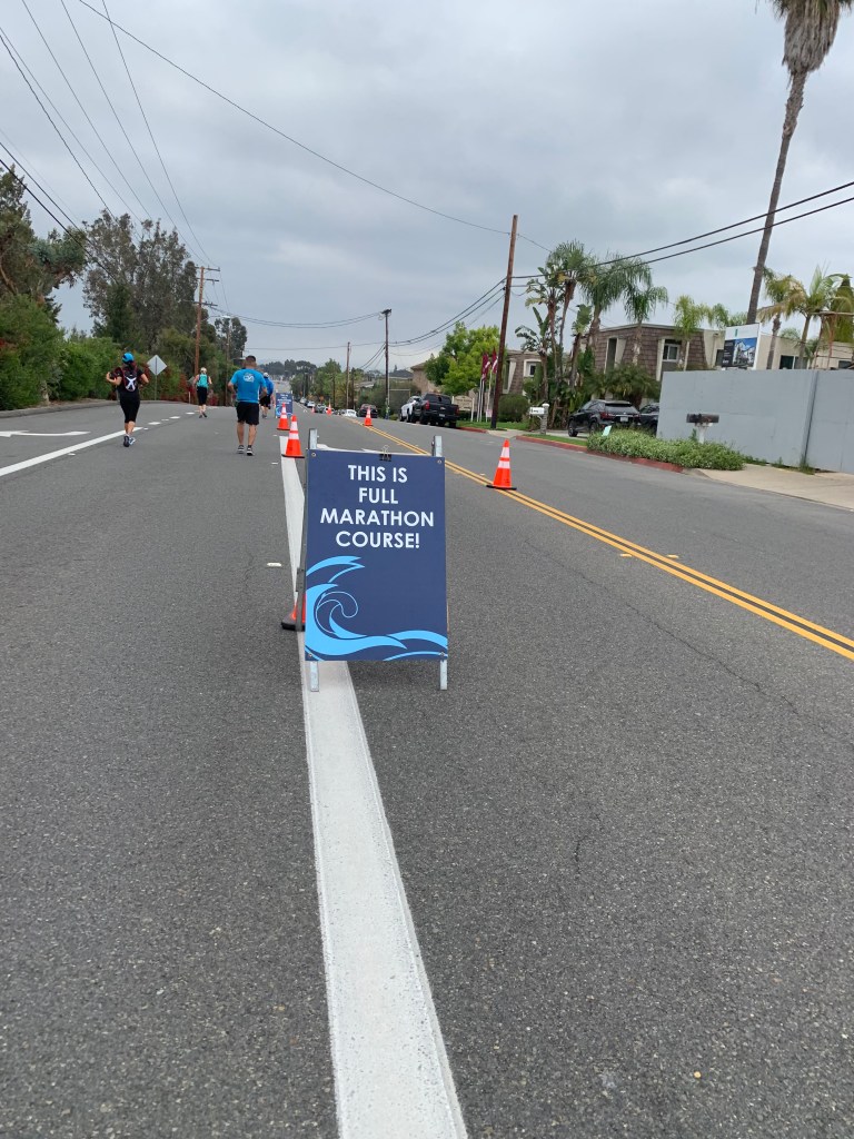 The race website states, “Marathoners continue into the heart of Orange County, Costa Mesa, passing by the Segerstrom Center for the Arts, around South Coast Plaza, and through the campus of Segerstrom High School. One more mile in Santa Ana before turning onto the Santa Ana River Trail for 1.5 miles before exiting at Gisler foot-bridge. Also new this year, runners will go through beautiful Mesa Verde neighborhoods and then the “Bird Streets”, providing you with that much needed support on the home stretch towards the OC Fair & Event Center.” https://ocmarathon.com/sdccu-oc-marathon-orange-county-ca/ Definitely not the scenic or most exciting 13.1 miles (the second half of the course), but I made it through.
